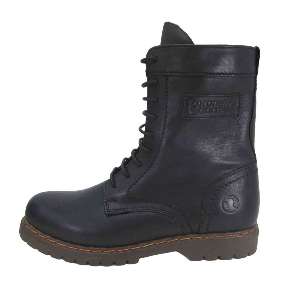 Botin señora Coronel Tapiocca piel negro, cierre de cordones y cremallera interior, sin forro, plantilla extraible textil termoconformada, altura de caña 17,5 cm, suela con tacón de 3 cm y plataforma de 2 cm, fabricada en España. Composición: Empeine: Piel. Forro: no lleva. Plantilla: Textil. Suela: Fibra sintética. Componente principal: Piel