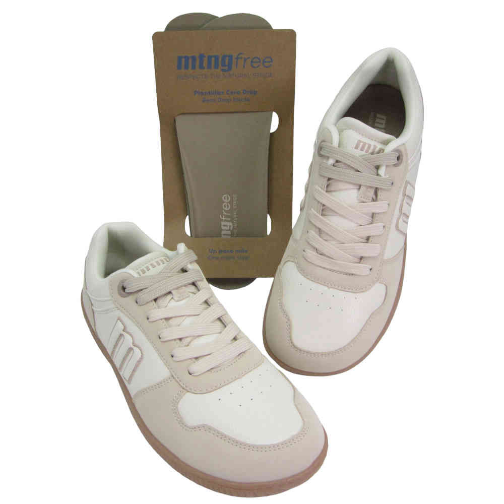 Zapatillas de color blanco y beige para mujer Mustang. Su suela de color crema proporciona un contraste suave, ideal para looks informales. Diseñadas y desarrolladas especialmente en colaboración con el Dr. Juanjo López, traumatólogo deportivo, para respetar el desarrollo natural del pie. Se trata de un calzado minimalista que gracias a su puntera ancha, suela totalmente plana (cero drop) y flexibilidad, mejora la anatomía del pie y favorece una mejor posición del mismo. Se vende con una plantilla de transición para hacer el cambio de calzado convencional a minimalista de manera progresiva. Con certificado VEGANO sellado por INESCOP, el cual garantiza que la naturaleza química principal del material no se corresponde con fibras de origen animal.
