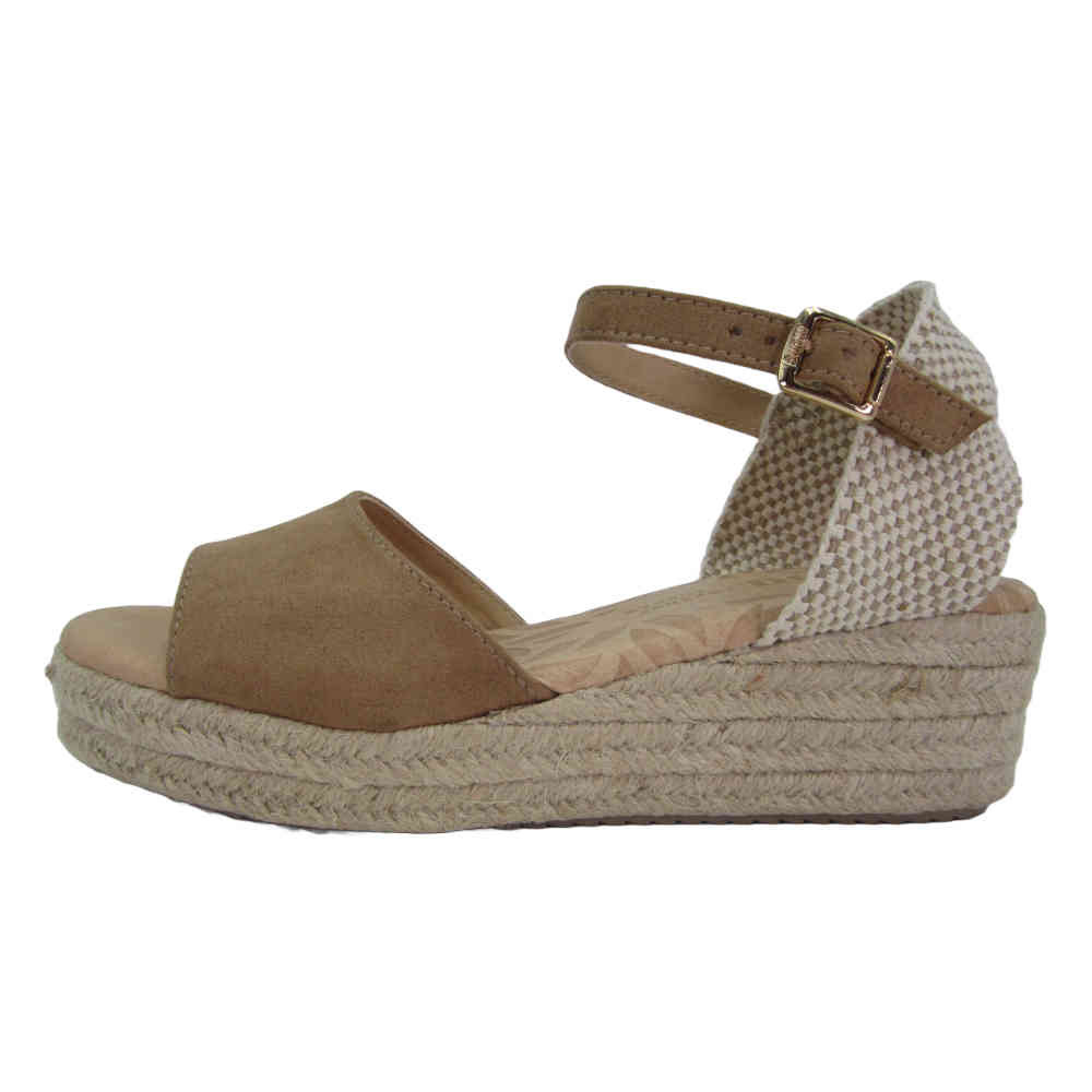 Estas cuñas de la marca Mariamare combinan un diseño elegante con la máxima comodidad, convirtiéndose en el calzado ideal para tu día a día. Fabricadas con materiales de primera calidad, destacan por su ligereza, flexibilidad y un ajuste perfecto gracias a su cierre elástico lateral. Características principales: Sistema de cierre: Cierre con hebilla Peso y flexibilidad: Calzado ultraligero y flexible, ideal para largas jornadas. Beneficios y sugerencias de estilo: Disfruta de un calzado que une elegancia y comodidad. Estas cuñas son perfectas para combinar con vestidos midi, faldas o pantalones de lino en tus looks diarios. ¡Dale un giro a tu estilo! Descubre el equilibrio perfecto entre confort y moda con estas cuñas. ¡Hazlas tuyas hoy y luce impecable sin renunciar a la comodidad!. Ref.: 59909, Color: Cuero, Material exterior: Tela, Altura tacón: 5 a 8cm, Cierre: Hebilla, Estilo: Casual